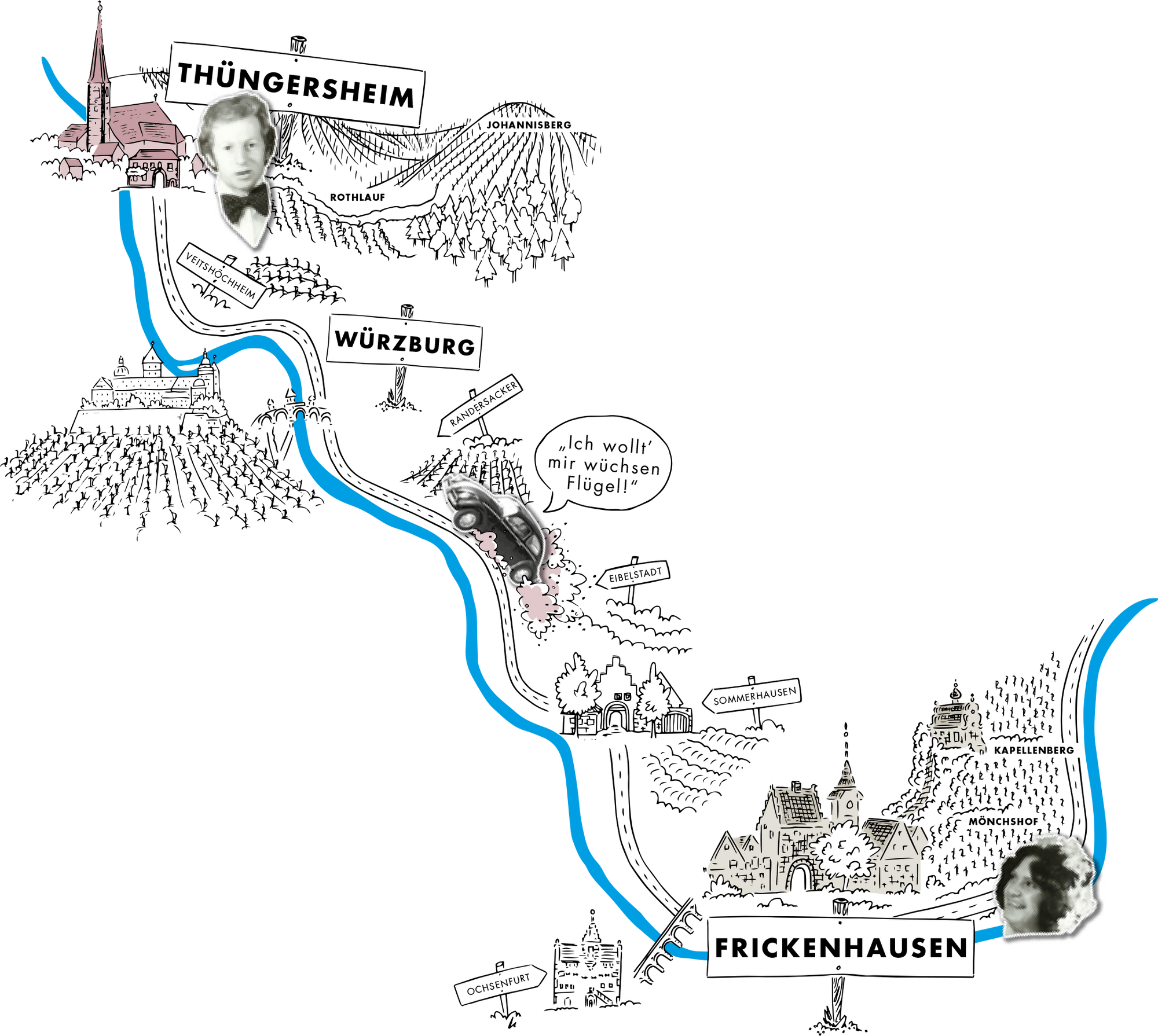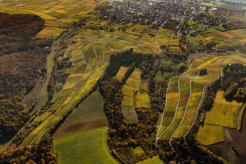 Die Frickenhäuser Steillage Kapellenberg liegt unmittelbar am Main und blickt über ein besonders schmales Stück des Flusstals hinweg. Auf diesem uralten Muschelkalkboden kultivieren seit über 1.000 Jahren Winzer ihre Reben.